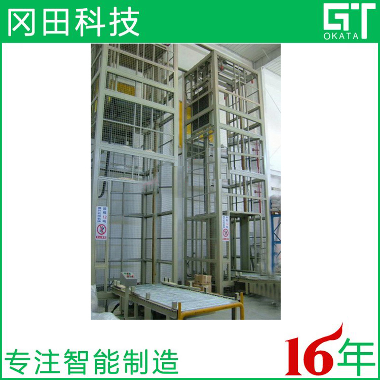 2、升降平臺的上下行程均可輸送物料,在升降平臺的一個循環(huán)過程中可使物料同時雙方向流動。