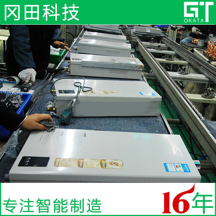 熱水器組裝線主要由鏈板輸送線組成,鏈板輸送機(jī)的輸送面平坦光滑,摩擦力小,可以安全且游刃有余地輸送熱水器配件并進(jìn)行組裝。