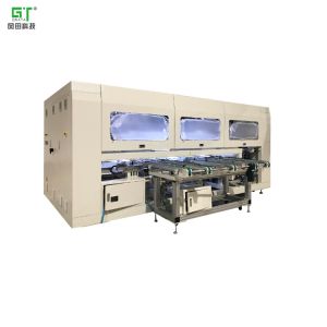 來料正反判斷、機器人自動上下料、自動測試、自動完成AAB重測邏輯、自動NG料挑選等多道工序。