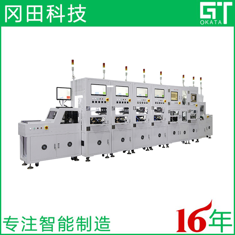 產品簡介:該設備是散熱器模組墊圈和導電泡棉自動化組裝測試生產線。生產線采用工位單機形式組合成線布局,